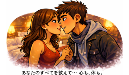 “あなたのすべてを教えて…心も、体も” (Teach me everything about you… your heart, your body.)
