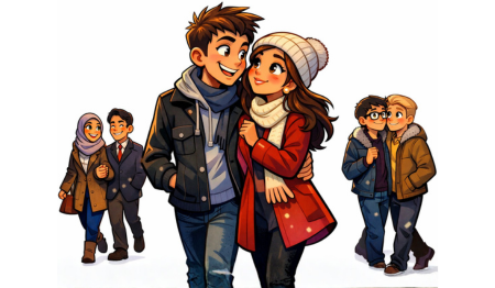 With each step, their connection deepens, the crisp winter air tingling with possibility, and the night shimmers with a magic so electric it might just spark a few stolen kisses.