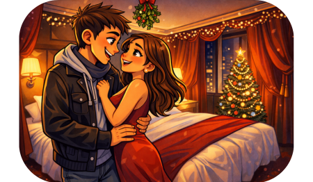 The hours pass like seconds. The city outside is quiet now; Christmas lights twinkle softly in the distance. Inside, the room is filled with warmth—their laughter, the soft whispers of phrases exchanged in two languages, and the unspoken connection growing stronger with every word.