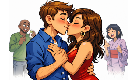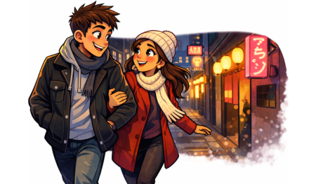They laugh together, the warmth of their shared moments and the festive glow of Tokyo’s Christmas lights wrapping around them like a cozy blanket. But the night isn’t over—Gina is eager to learn more sultry Spanish phrases, her eyes sparkling with mischief, while she playfully teaches Mike Japanese in return.