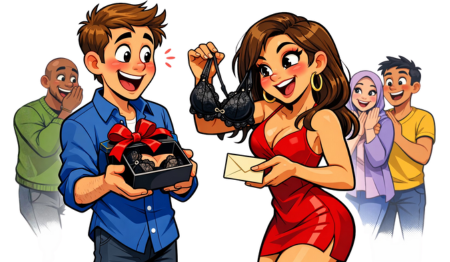 Later, they exchange gifts. Mike hands Gina a small box tied with a silky red ribbon. Inside, she finds something undeniably sexy—lace lingerie that leaves little to the imagination.