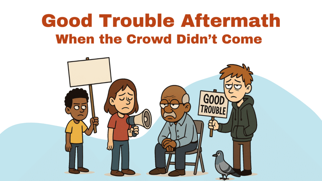 Organizers had high hopes. The “Good Trouble” brand was strong — evoking not just John Lewis but a broader tradition of dignified defiance. Flyers were printed. Social media was buzzing. Local groups signed on.