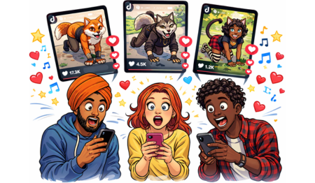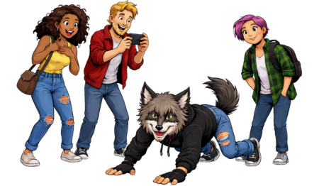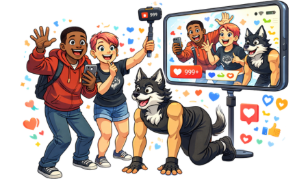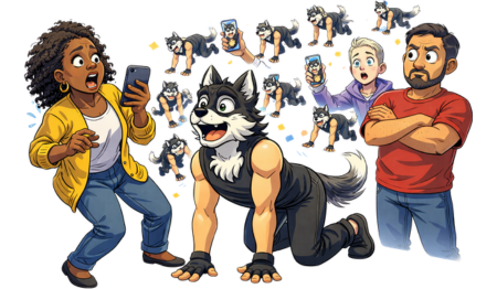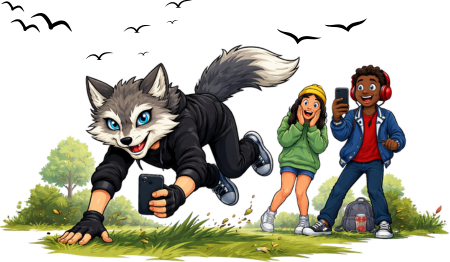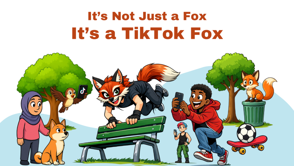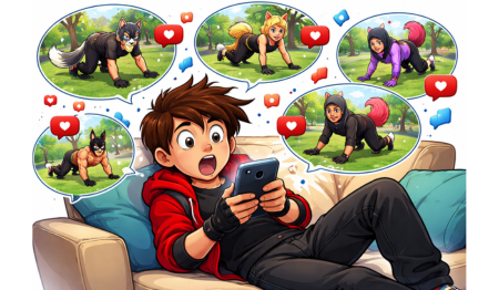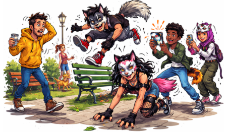 It’s a teenager wearing a handmade mask, a synthetic tail, and holding a phone—running on all fours through a public park while someone films for TikTok.