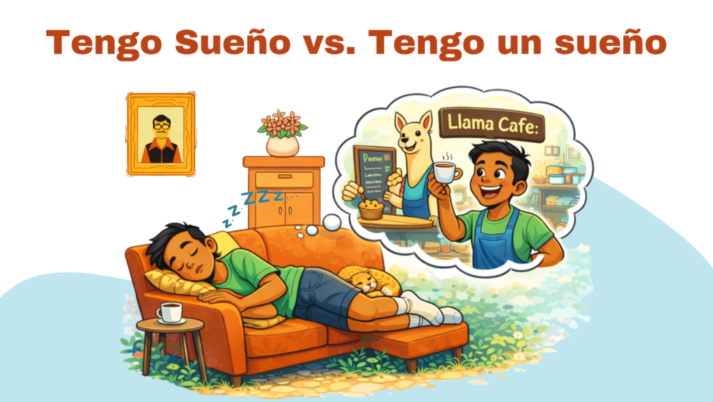 Wait… what? You were just trying to say you’re tired! Here’s the thing: “Tengo un sueño” isn’t about needing a nap—it’s about having a dream. Like, “I want to start a band” or “I’m going to open a llama-themed café.”