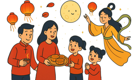Families gather to honor reunion, romance, and the lunar diva herself — Chang’e, the moon goddess who basically invented long-distance relationships. Some say if you eat enough mooncakes, you might just float up to visit her. (Okay, maybe not… but try telling that to your third slice.)